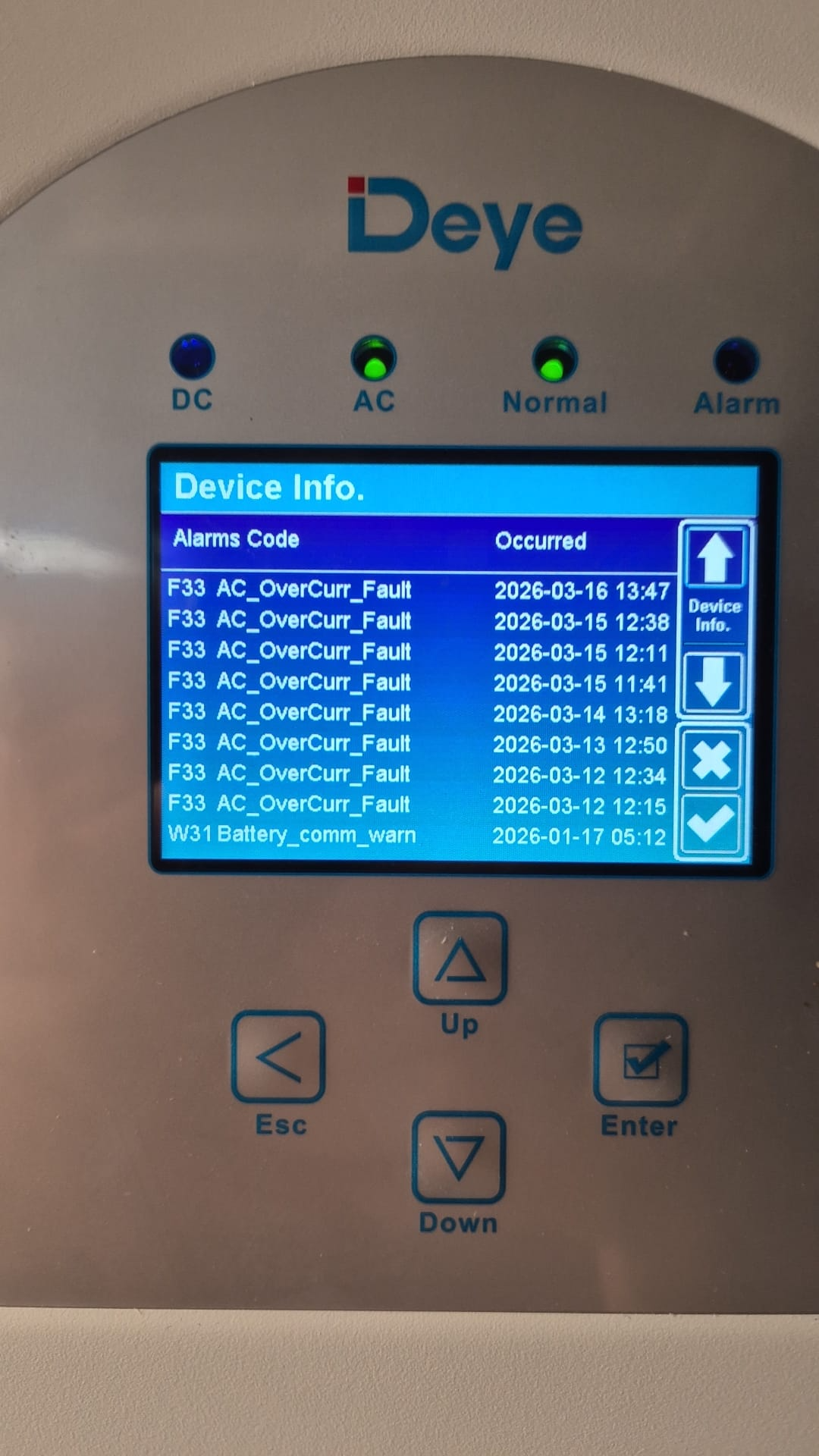 A helyszíni szerviz ritkán jutalmazza a leggyorsabb feltételezést. Az első pillantásra rejtélyesnek tűnő riasztás gyakran közönségesnek bizonyul, ha megértjük az elektromos utat. Az F33 pontosan ebbe a kategóriába tartozik. Egyes Deye hibrid invertercsaládoknál a kód AC_OverCurr_Fault néven szerepel. Más családoknál a számozás kissé eltolódik, de a gyakorlati tanulság nagyjából ugyanaz: kezdje a váltakozó áramú oldallal, mielőtt arra a következtetésre jutna, hogy a gép tévesen jelentette az eseményt.